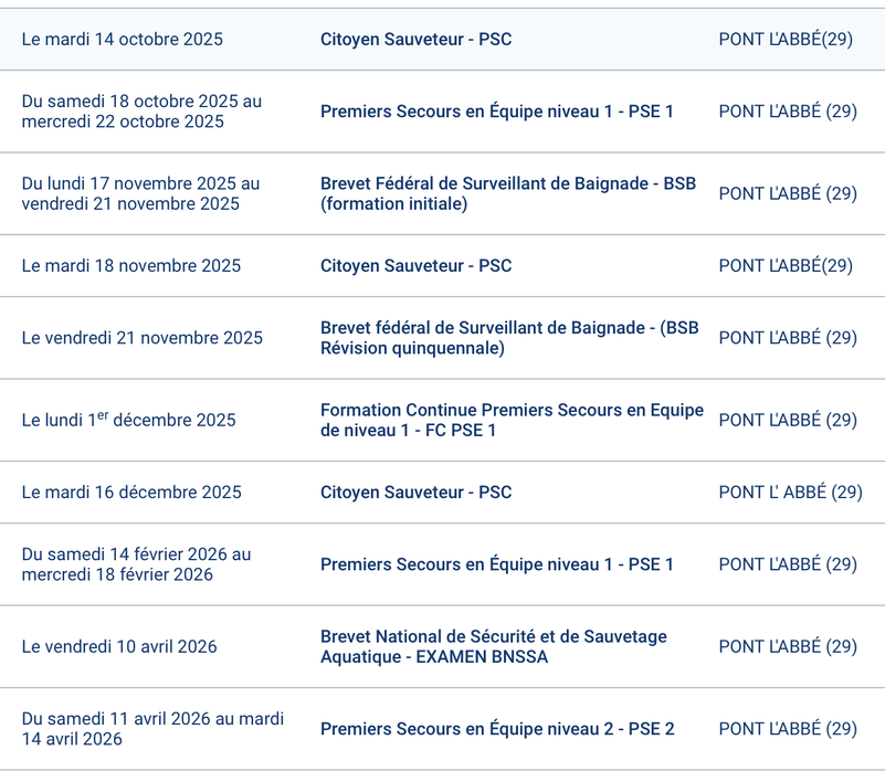L'ASSPB forme au sauvetage aquatique le grand public ou les professionnels et délivre les diplômes :