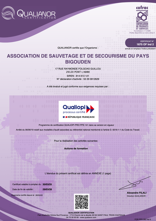 L'ASSPB a été audité et certifié par l'institut Qualionor.